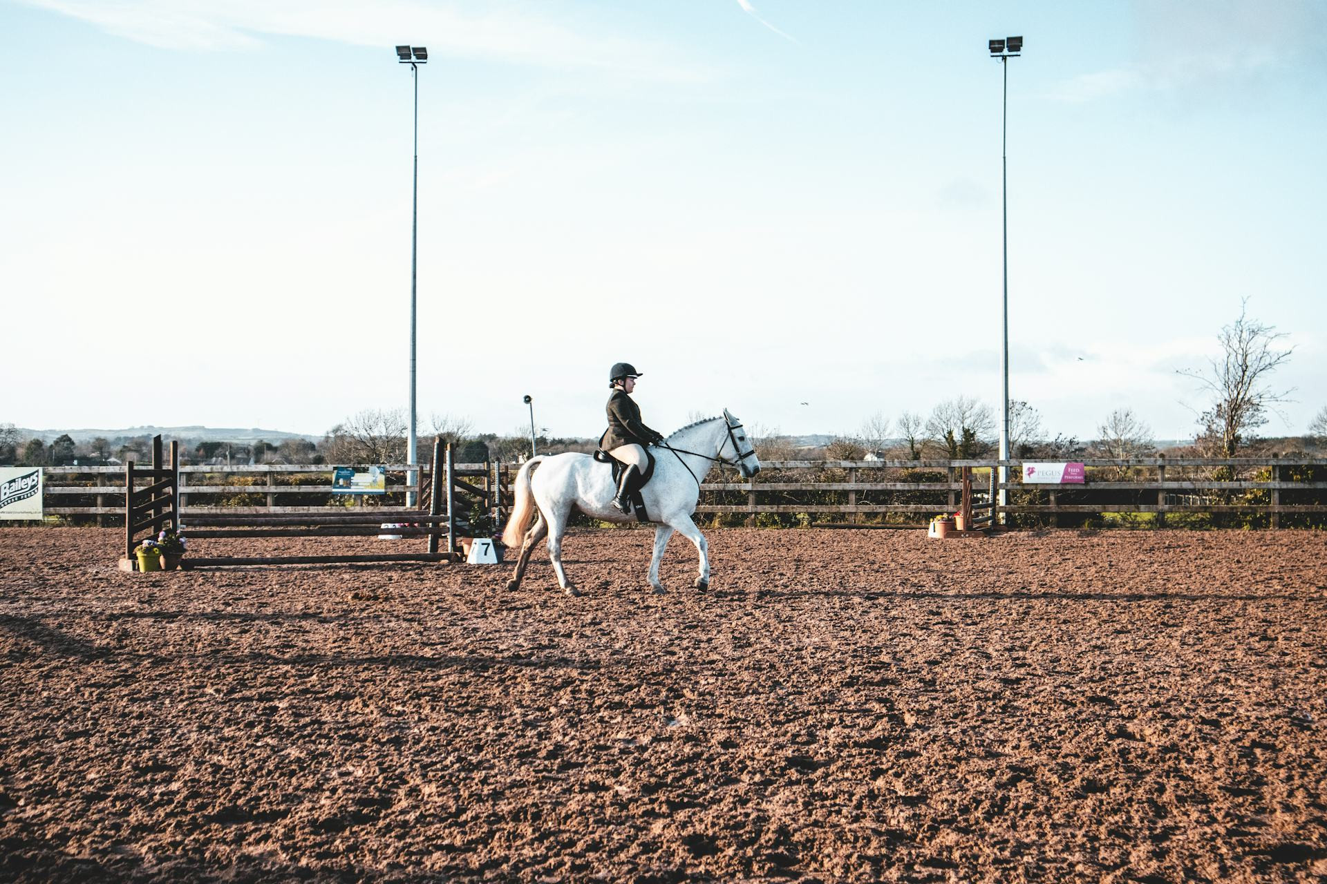 For hesten er omgivelsene nye: lyder, lukter, bannere og andre hester kan virke overveldende. Gi den tid til å venne seg til stedet. Gå en runde på området, la den se seg rundt, og ros den for rolig oppførsel. Jo tryggere hesten føler seg, desto bedre kan den prestere.